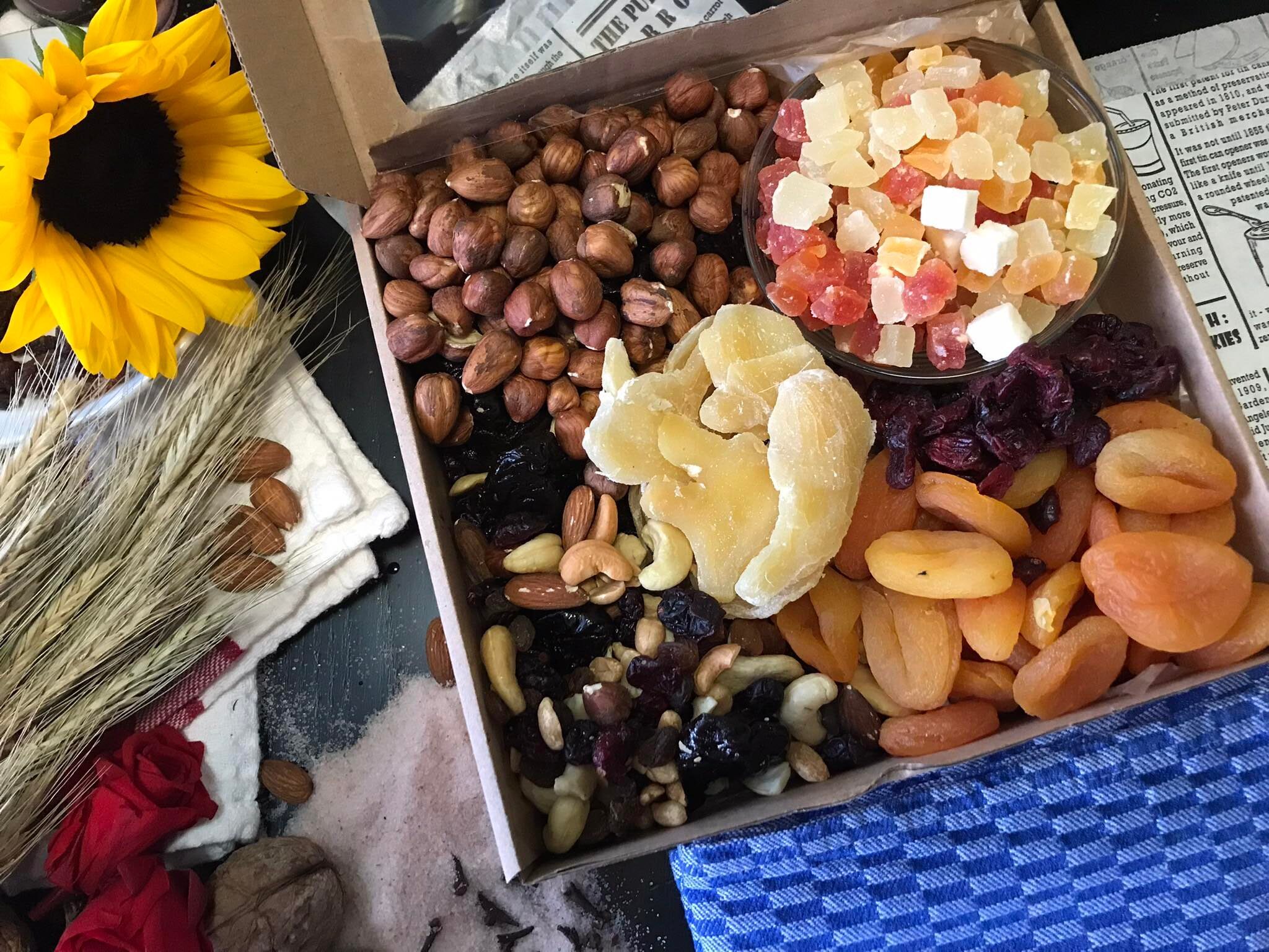 Lješnjak, suhe marelice, suhi đumbir, grožđice, indijski oraščić, miješano tropsko suho voće