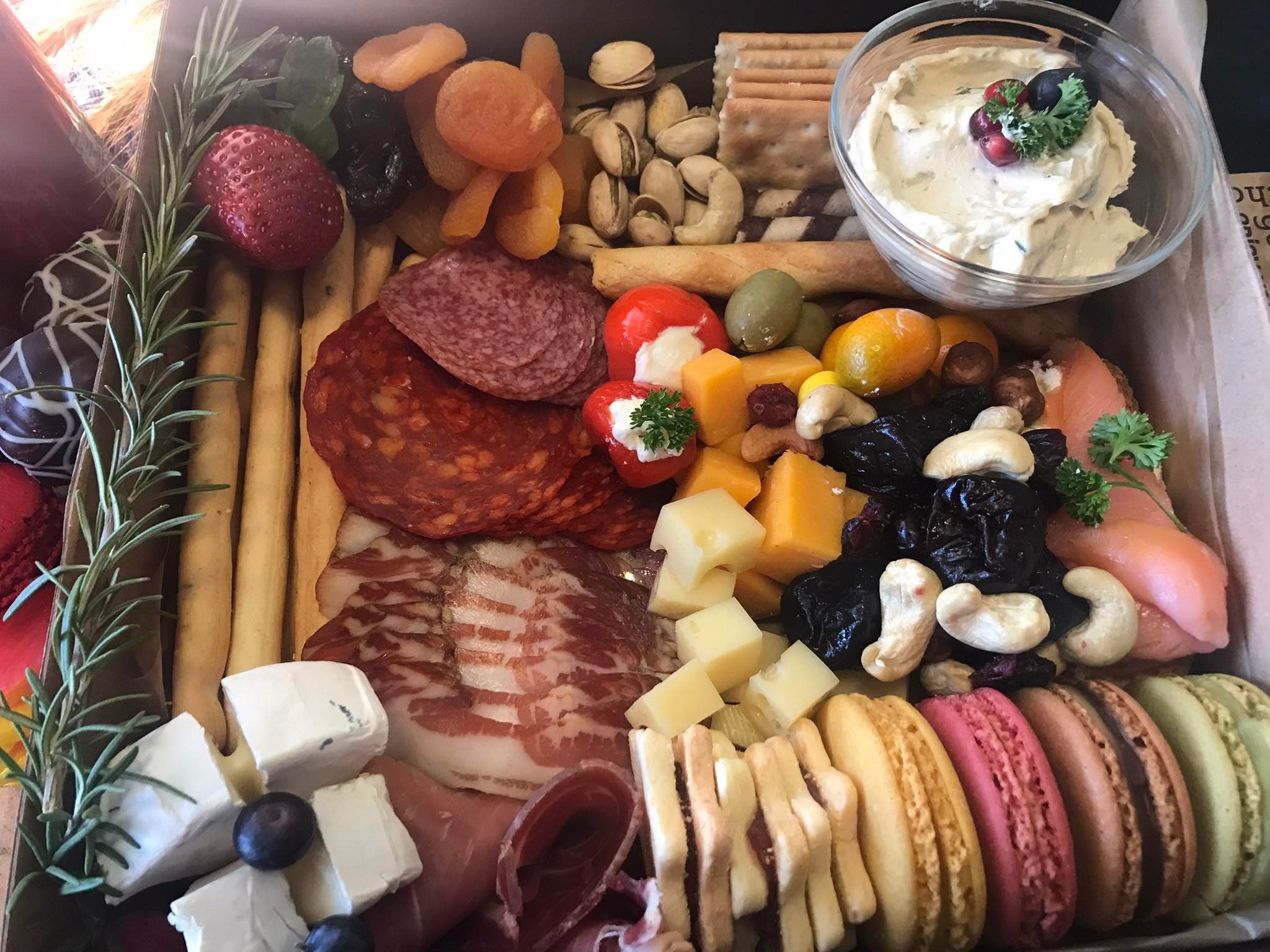 Opis: losos, namaz bakalar, naresci, 3 vrste sira, macaronsi, grisini, suho voće